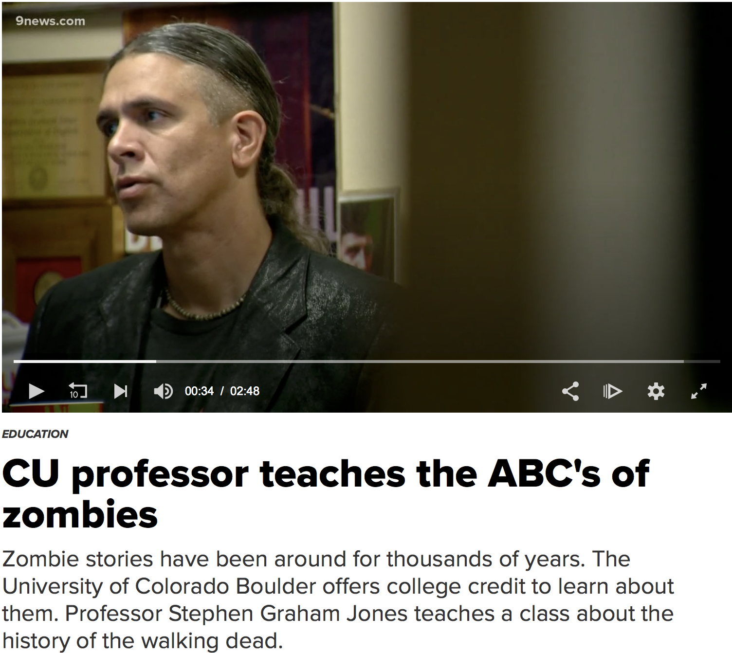 Man, was at the gym long about 11:15 yesterday, just having a good time reading a JS Breukelaar collection and sweating on various torture devices, when I got a call that maybe I could clean up and drive into my office on campus (like, MILES away) by noon, to talk to the newspeople for a segment that afternoon? Answer, always, when media calls: “Can’t talk right now, I’m already going to that place you told me to be at.” So, I made it, it was great talking zombie stuff, and, though I didn’t get to watch it live—was in-transit to an early screening of the new Halloween (which was an hour away…)—I do now (thanks to Andrea Rogers) have that handy link up there.