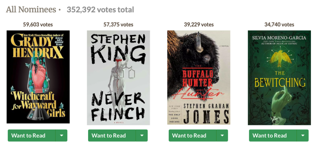 And the Goodreads Choice Award in Horror Goes to . . . December 4, 2025December 4, 2025 Grady Hendrix! Honored to be in this heady mix, though: https://www.goodreads.com/choiceawards/readers-favorite-horror-books-2025