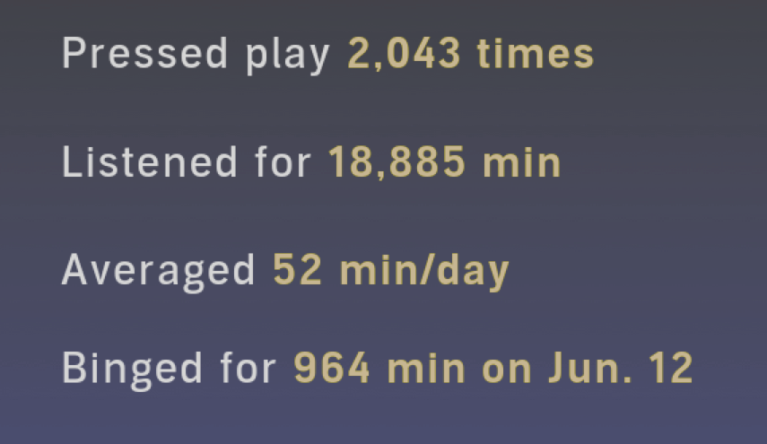 Audible stats for 2021 January 6, 2022January 6, 2022 Guess everybody else just got theirs too, yes? Wild. guessing Horror is in either SF&F or Mysteries/Thrillers? I do not remember that “binge.” but maybe that’s how binges work?