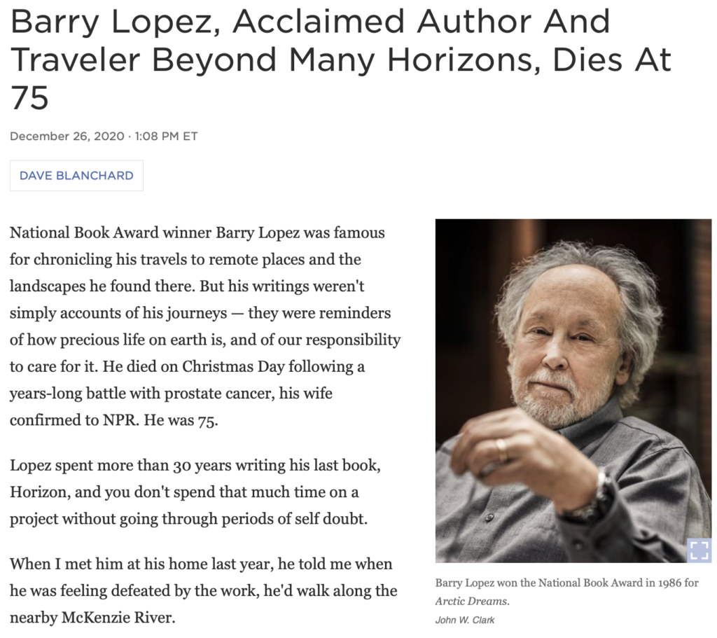 A good friend. He taught me a lot. But whenever I’m out in the trees, watching a squirrel just do its squirrel things, or watching a bird glide in place, Barry’ll be there.