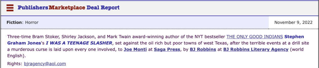 Was going to say this was the fastest of all the years, but, really, man, the last two or three have been like stepping on a slip-n-slide, then just trying to keep my balance somewhat, splashing into other countries (Dubai, France, Spain. was in a Iceland for a bit, I guess. missed Germany, but Italy’s soon), juggling a new comic book (Earthdivers, which just keeps on selling all its copies out) and my first audio-only novel (The Babysitter Lives, with the amazing Isabella Star LeBlanc to read it). Plenty of stories, too. Couple-three of the0longer ones online were “The Clown Brigade” and “The Backbone of the World” and “Men, Women, and Chainsaws.” Also had a couple stories read by LeVar Burton: “To Jump is to Fall” and “I Was a Teenage Space Jockey.” Had stories in a lot of anthologies: Dark Stars, Human Monsters, Howl, Other Terrors, Best American Science Fiction and Fantasy, Second Chances, Screams from the Dark, The Year’s Best Dark Fantasy and Horror, Shattered & Splintered, Eyes of the Demon, maybe a couple more I lost track of. Had individual stories run at Lightspeed (“Bad Code“, “Broken Record“), Uncanny (“Flowerkicker“), Conjunctions (“The Nature of the Beast“), Air/Light (“The Joneses“). Wrote forwards for a McMurtry book, for a Conan book, and contributed a piece to a Barry Lopez book—all forthcoming. Was on a lot of cool podcasts/sites (couple of recents: The Kingcast, Tor.com (the rest: click here). Started a “Slasher Nation with Stephen Graham Jones” column in Fangoria. Had COVID twice. Hit NYCC again. Telluride Horror Show again. What was the Denver Comic Con again. Scares that Care for the first time. Probably a few more, lost in the swirl. Bought a lot of new boots, but no new trucks. Ate a whole school of salmon, I’d bet, but plenty of halibut and flounder and tilapia, too. Lost zero knives, for once, and broke no phones. Sold I Was a Teenage Slasher to Saga: