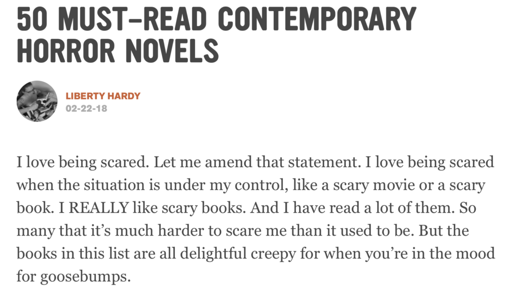 BookRiot Horror February 23, 2018February 23, 2018 Proud to be here as well: https://bookriot.com/2018/02/22/contemporary-horror-novels/