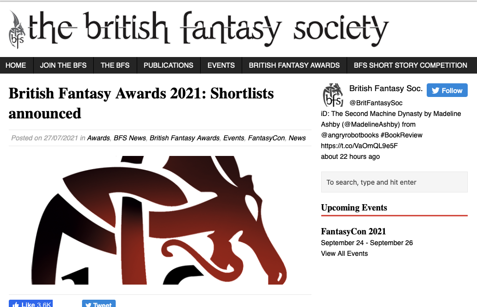 Wow. Always heard of these—didn’t Gaiman’s A Midsummer Night’s Dream issue of Sandman win one?—but never imagined I’d be in the running for one.