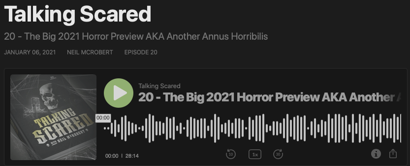 Chainsaw blips January 11, 2021 https://twitter.com/sadiehartmann/status/1346620114527895552?s=21 https://youtu.be/NuOlplNnkKg?t=964 https://letsgetgalactic.com/2020/12/31/my-most-anticipated-book-releases-of-2021/ https://talkingscared.buzzsprout.com/1322413/7148212