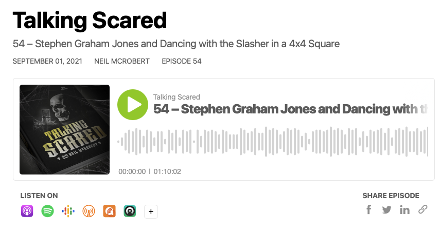Chainsaw interviews, podcasts September 1, 2021September 1, 2021 All from yesterday & today: This week the @Kingcast19 boys are joining forces with award-winning horror author @SGJ72 (author of this week's MY HEART IS A CHAINSAW) to investigate @StephenKing's THE OUTSIDER…and also spiders. Like, there's a lot of spider talk in this one, folks.https://t.co/nhsYItlE1g pic.twitter.com/3taaJhbD6S— FANGORIA (@FANGORIA) September 1, 2021 Salvation Through Horror in “My Heart is a Chainsaw” On the Cover: Stephen Graham Jones https://www.colorado.edu/today/2021/08/31/stephen-graham-jones-reflects-latest-slasher-novel NEW! We’re falling into the season with hot new titles from some of the genre’s best. The September issue of The Big Thrill is live now!https://t.co/6RO37e7FuP #TheBigThrill @thrillerwriters pic.twitter.com/5BBmvLsXsz— The Big Thrill Magazine (@TheBigThrill1) September 1, 2021 Stephen Graham Jones Slashes Into the Mainstream