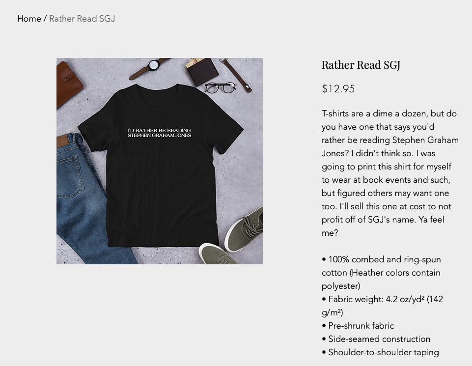 Cool kids’ shirt? October 24, 2022November 13, 2022 https://www.shanehawk.com/product-page/rather-read-sgj in action: https://twitter.com/simmonskali/status/1587238242579288064?s=46&t=HNm9vYH79964X7mfILgLww https://twitter.com/jeffreadshorror/status/1588852455655497729?s=46&t=ab249cBf_mJvDUmsrqEIFA https://twitter.com/SadieHartmann/status/1591814871448195072?s=20&t=Ch-lObiyEPEGmF4euNBRow