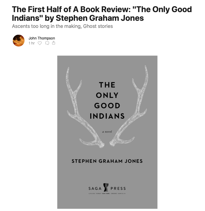 Couple elky write-ups July 18, 2020July 18, 2020 http://kendallreviews.com/book-review-interview-the-only-good-indians-stephen-graham-jones/ https://basicchunnel.substack.com/p/the-first-half-of-a-book-review-the