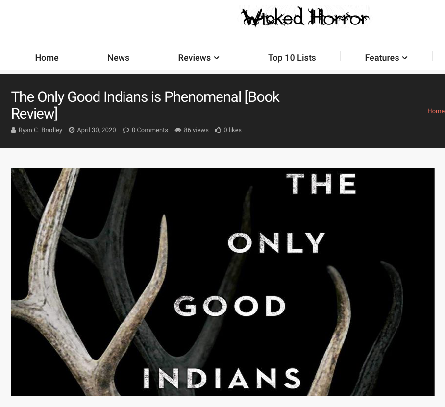 Couple more elky reviews July 13, 2020July 13, 2020 https://www.lonestarliterary.com/content/lone-star-review-only-good-indians https://www.wickedhorror.com/horror-reviews/the-only-good-indians-is-phenomenal-book-review/