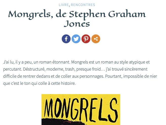 Couple of Mongrels reviews January 26, 2021January 26, 2021 http://ophelie-hervet.com/mongrels-de-stephen-graham-jones/ http://www.errantdreams.com/2021/01/review-mongrels-by-stephen-graham-jones/
