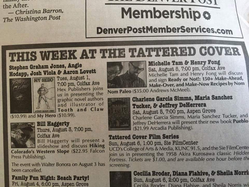I’m at Tattered Cover (Colfax—was at LoDo last week, with Andy Davidson) this week:
