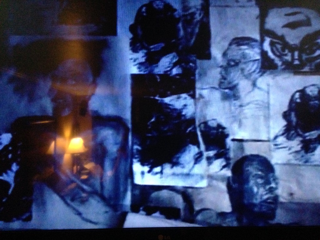 Back to the content: I really didn’t mean to be a thief, but apparently—was just rewatching (in 2014), caught this—I may have stole Jenny’s charcoal demon-sketches on her bedroom wall scene from X-Files‘ “Grotesque” episode (3×14):