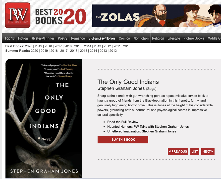 Elky stuff October 23, 2020 https://best-books.publishersweekly.com/pw/best-books/2020/sf-fantasy-horror#book/book-5 https://www.americamagazine.org/arts-culture/2020/10/16/review-native-american-fight-survival-white-world https://www.buzzfeednews.com/article/ariannarebolini/most-popular-scary-horror-audiobooks-halloween http://horror.org/2020/10/halloween-haunts-halloween-then-and-now-and-in-the-new-now/ https://feeds.aarp.org/entertainment/books/info-2020/scary-books.html?_amp=true&__twitter_impression=true Boo(k)! We've rounded up the SPOOKIEST reads for you to enjoy as you count down the days to Halloween. Check out these scary stories from some of our favorite authors. pic.twitter.com/LpKEtajFkE— Den of Geek News! (@DenofGeekUS) October 20, 2020 https://simeontsanev.com/my-top-five-favorite-books-of-the-year/#.X5Nwoi9h3UI https://alannahkpearson.com/2020/10/18/the-only-good-indians/ https://www.ozy.com/good-sht/this-weekend-museum-tours-from-your-couch/394666/