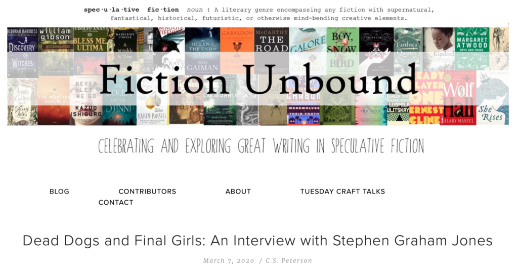 Fiction Unbound interview March 7, 2020March 7, 2020 https://www.fictionunbound.com/blog/the-experimental-and-horror-an-interview-with-stephen-graham-jones