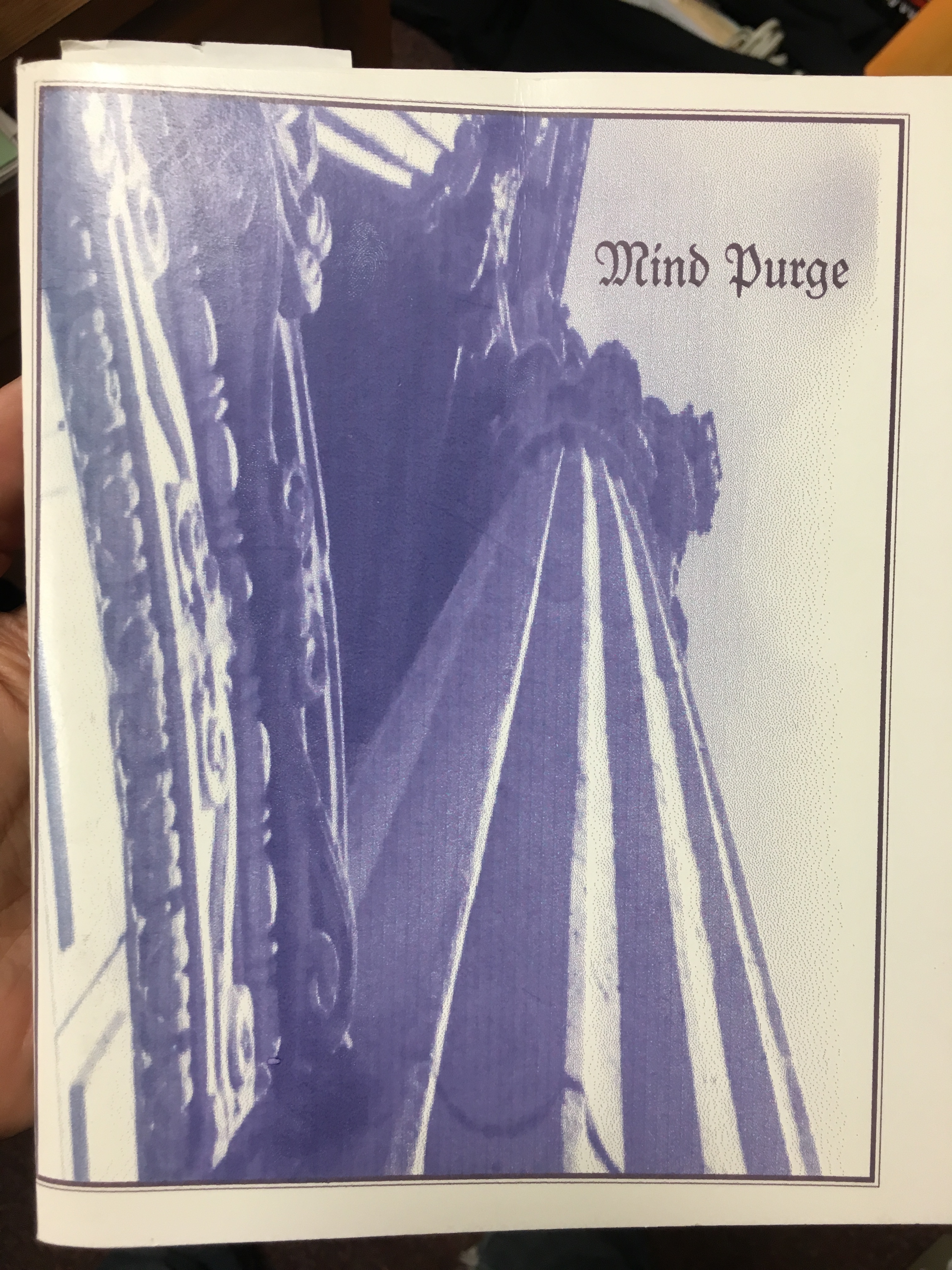Anyway, just wanted to snap a couple pics, as this stuff’s sure to get lost. I dug that Mind Purge up THIS time, sure. But it’s already falling apart pretty bad. Can’t imagine it’s not loose-leaf completely, the next time I need it. Could be it’s the last one in existence, too? I mean, I can’t imagine there were more than forty or fifty of these printed up, better than twenty years ago . . .