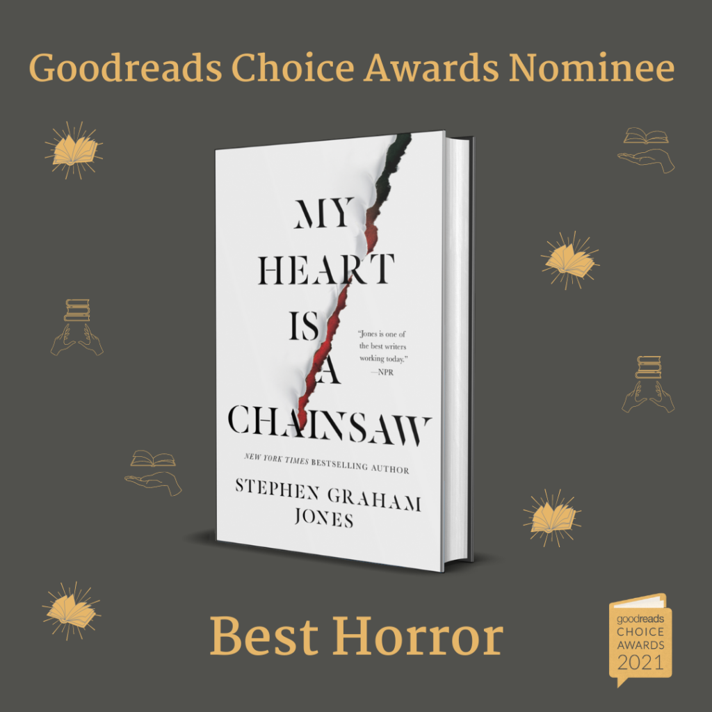 My Heart is a Chainsaw, swimming upstream. Which I guess is mixing metaphors. “Hitting it out of the park,” then? No, no. Um. “Firing on all cylinders?” “Making waves?” “Bringing home the bacon?” I would say “Leveling the competition,” as a way to, you know, be pretend-clearcutting a stand of timber, except . . . man, keeping a metaphor in check isn’t worth having to think about knowing down a bunch of pretty trees, is it? And, anyway: those trees are excellent novels, some of them by friends, the rest of them by—I hope—friends-to-be. So? Click, vote some direction, thanks. And then the rest of the categories: