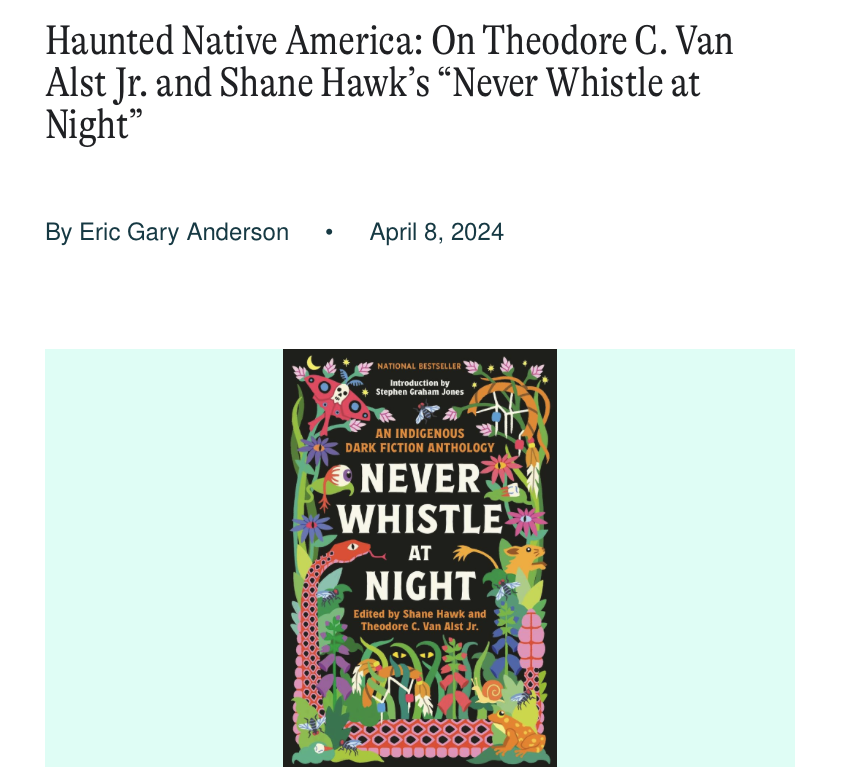 Grab bag of reviews and lists April 12, 2024December 9, 2024 For Good Indians, Mannequins, Mapping, more: https://lareviewofbooks.org/article/haunted-native-america-on-theodore-c-van-alst-jr-and-shane-hawks-never-whistle-at-night https://shepherd.com/best-books/supernatural-terror-with-real-world-adversity Five of the Best Literary Historical Novels https://bookriot.com/?p=563411