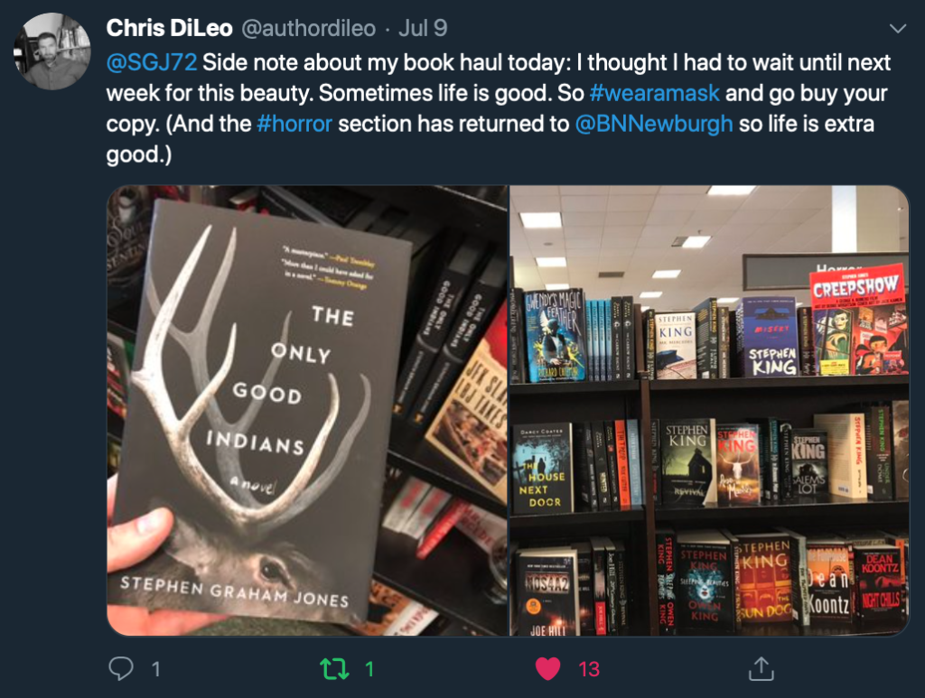 Horror Section at B&N! July 10, 2020July 10, 2020 We’re getting back to good days! https://twitter.com/authordileo/status/1281340513887690753?s=20