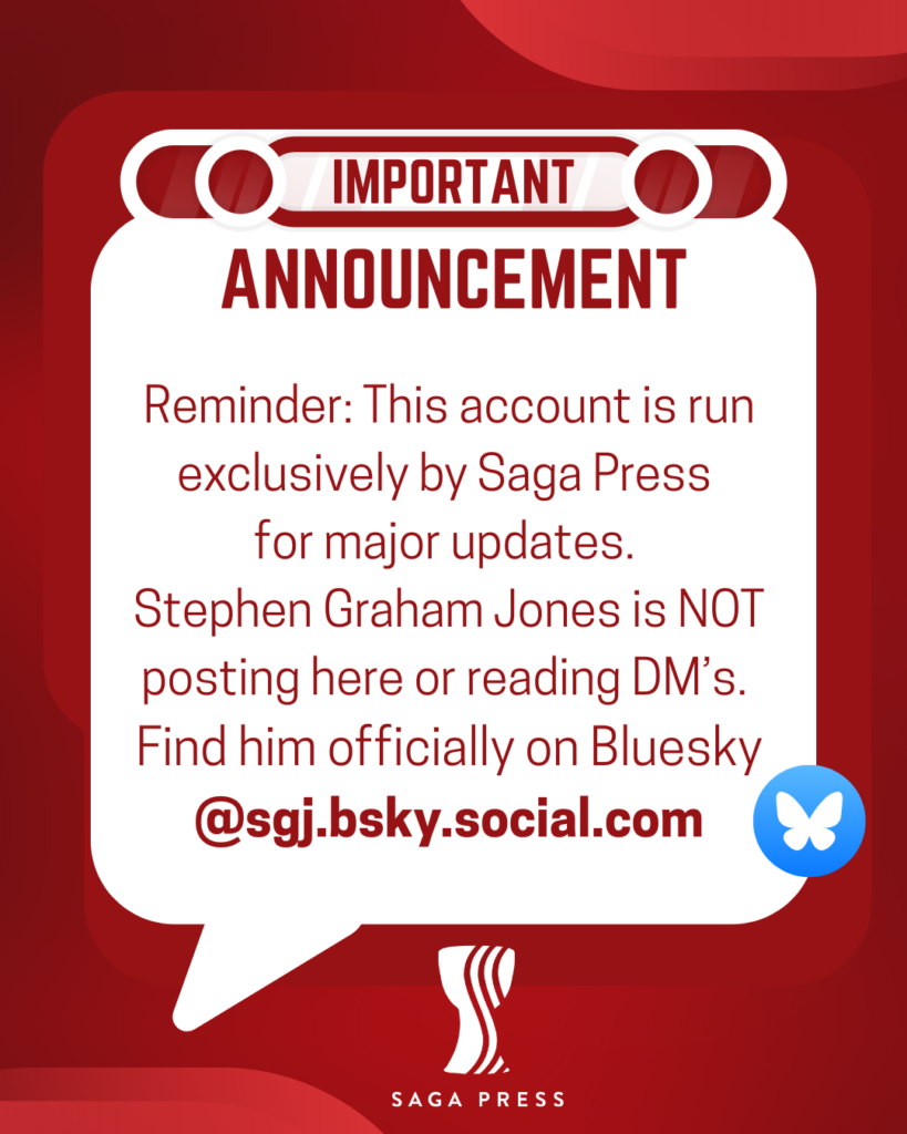 Or, if it’s a better (see: “worse”) pun . . . “InstaGraham?” Anyway, my account there’s going to be solely publisher-run, now. Which doesn’t really mean I’ve ever been running it. I did learn how to do one thing on it, but I can never remember to check in there, so will just keep out of it, save for showing up for people’s . . . um, video-things? I’ve done some of those, I know. You’ll know it’s me because I’m the one super late, who doesn’t understand what’s going on. Anyway, the place I’m actually active is BlueSky. Well, I’m also on Goodreads, but most of my posting and foolishness is on BlueSKy.