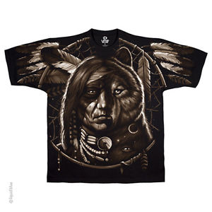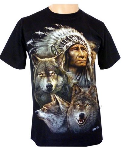 And, yes, there’s so much going on in this music video that I’m not even going to talk about, since where’s the room and what’s the purpose, but what I want to showcase, it’s early on in it, when that same old thing happens that always happens, like dominoes falling: Indians used to live in “nature” / Indians are close to nature / Indians are nature / Indians must be wolves. It’s some good rational colonial thinking, showcased in such wonderful & accurate & respectful truckstop shirts as: