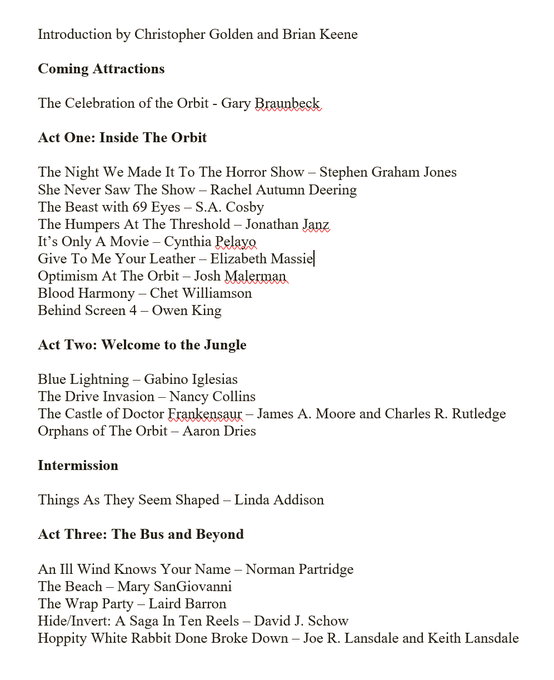 Lansdale’s The Drive-In May 24, 2022May 24, 2022 Couldn’t be more thrilled to be part of Briane Keene and Christopher Golden’s tribute anthology. Brian tweeted the TOC: