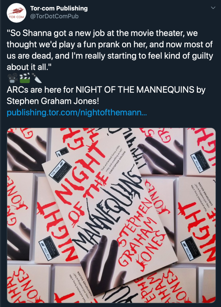 Mannequins ARCs! February 21, 2020February 21, 2020 https://twitter.com/TorDotComPub/status/1230915622567063553?s=20