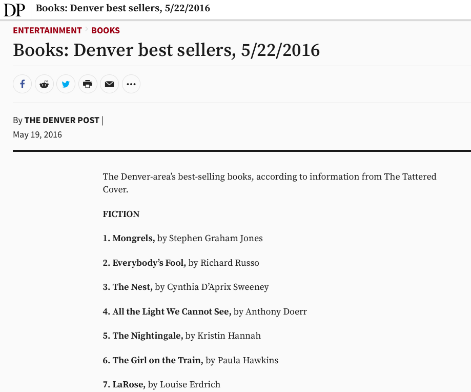 Mongrels #1 in Denver May 23, 2016May 23, 2016 According to the Wall Street Journal: And here’s the longer list, via the Denver Post: