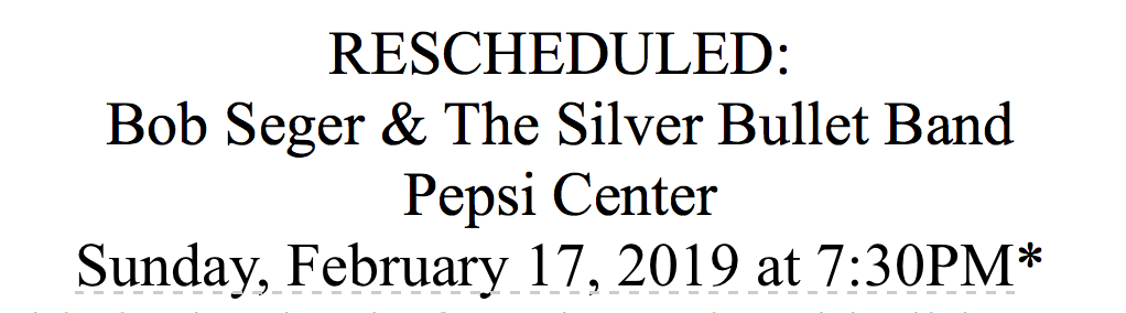 Well, 9:00pm some night in February: so, so excited this is back on, and that the tickets I got for the original/cancelled show still work for this one. One of my main dreams has always been to see Seger live. Here’s hoping this Denver concert really happens: