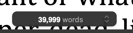 Oh, man, this thing I’m writing, it’s one word away from clicking over into official novel land. And it’s almost two-thirds done, maybe, hopefully: