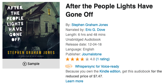 People Lights Audiobook December 12, 2018December 12, 2018 Went live last week. Cool: https://www.audible.com/pd/After-the-People-Lights-Have-Gone-Off-Audiobook/B07KYXDV21