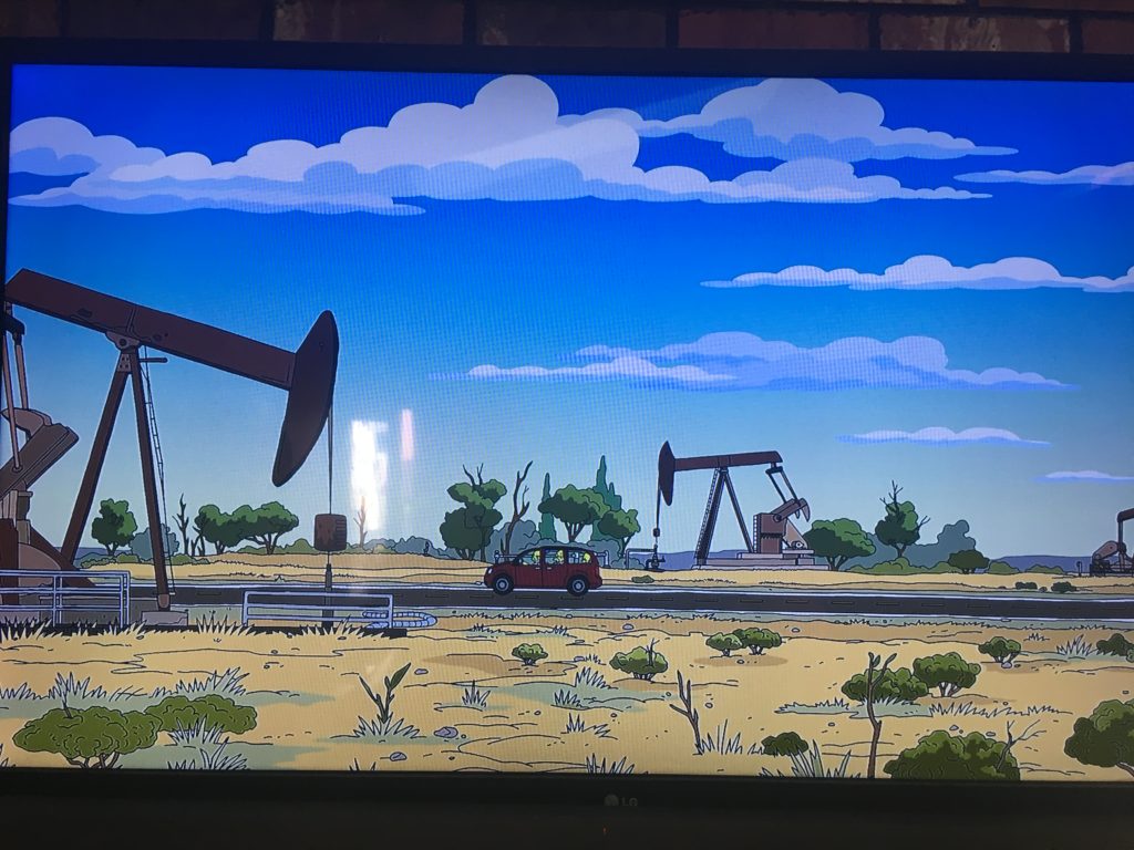 Pumpjacks January 10, 2019January 10, 2019 Man, West Texas on The Simpsons, after, what? Thirty years? Worth the wait: grew up riding these. somehow kept all my legs Now I just need to composite this ancient-old “Simpsons yourself” trick into that pasture and it’ll be like I’m a real guest star: