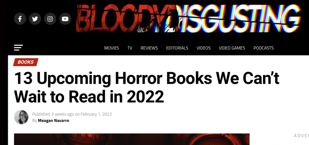 Reaper fun February 19, 2022February 19, 2022 Don’t Fear the Reaper‘s not out for a year yet, but, while it was happening here in 2022: https://bloody-disgusting.com/books/3701347/13-upcoming-horror-books-we-cant-wait-to-read-in-2022/ The most wanted crime novels of 2022 We're excited for all the great new books coming in 2022. Check out next year's most buzzed-about reads and pre-order the ones you're most excited about. https://t.co/w3jdgyUykJ pic.twitter.com/BZGIKJiMFC— Apple Books (@AppleBooks) December 22, 2021 50 Most Anticipated Horror Books of 2022 16 Horror Novels To Look Out For in 2022 We Scare You To Read This: Exciting 2022 Horror Books https://shereads.com/best-horror-books-coming-2022/