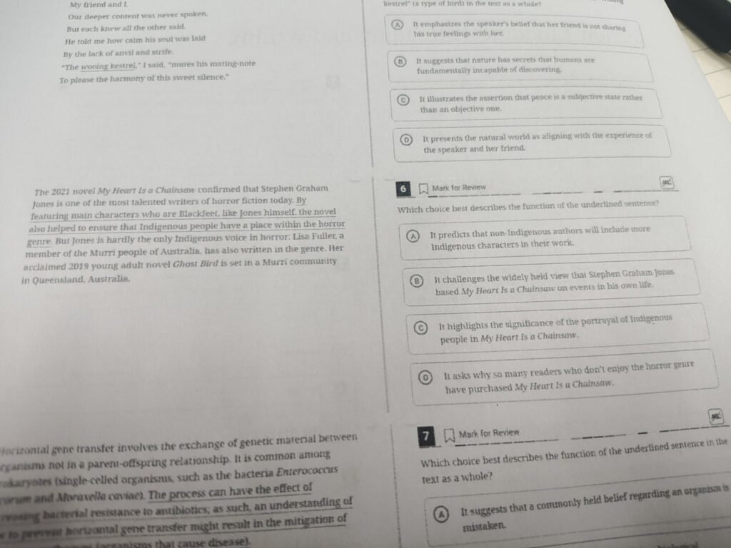 Been hearing for about a year that some of my books have been in the PSAT and SAT—but nobody’s smuggled a snapshot out. Guessing . . . phones aren’t exactly allowed into those testing environments? But, finally: