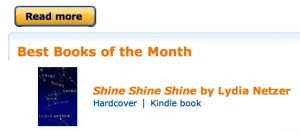 I knew from the first time I saw the title of this book that I was going to have to consume it, and then I lucked onto an ARC, meaning all I had to do was steal some time from myself. Which, I can be particularly unwatchful when the reading’s good enough. And, here, it is, it was, it would be again. And, like me, I’d guess a lot of you are getting Amazon emails with Lydia Netzer’s Shine Shine Shine at the top of their lists. Deservedly so. There’s a wit here, a lightness of touch, and a continual mulling-over of story that’s compelling. And, rather than excising all my favorite passages, let me just show you how many of those favorite passages there are: