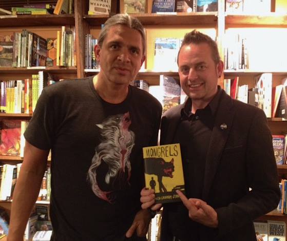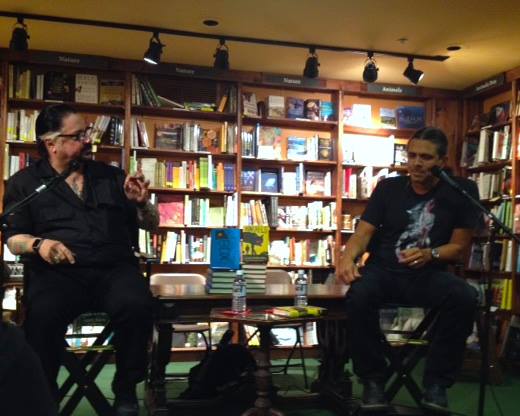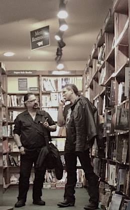 Remember how in Mötley Crüe’s “Home Sweet Home” video, there’s all these slow-motion, black and white scenes from before and after and during the concert, the tour, this life on the road? That’s what Billy Stratton’s snapshot of Richard and Kadrey last night at Tattered Cover reminds me of: