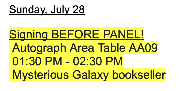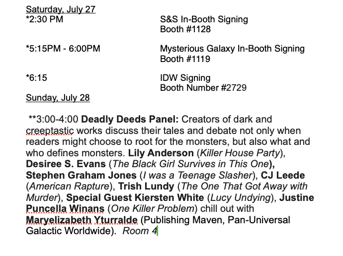 Hope to see some/all of you on the slasher road in a couple weeks. It starts in NYC, at The Strand, and then wends and winds across America. Not listed here is San Diego Comic Con—I’m a last-minute add, but will likely be doing a signing or something at the Simon & Schuster/Saga booth? Will try to say here when and if I know.