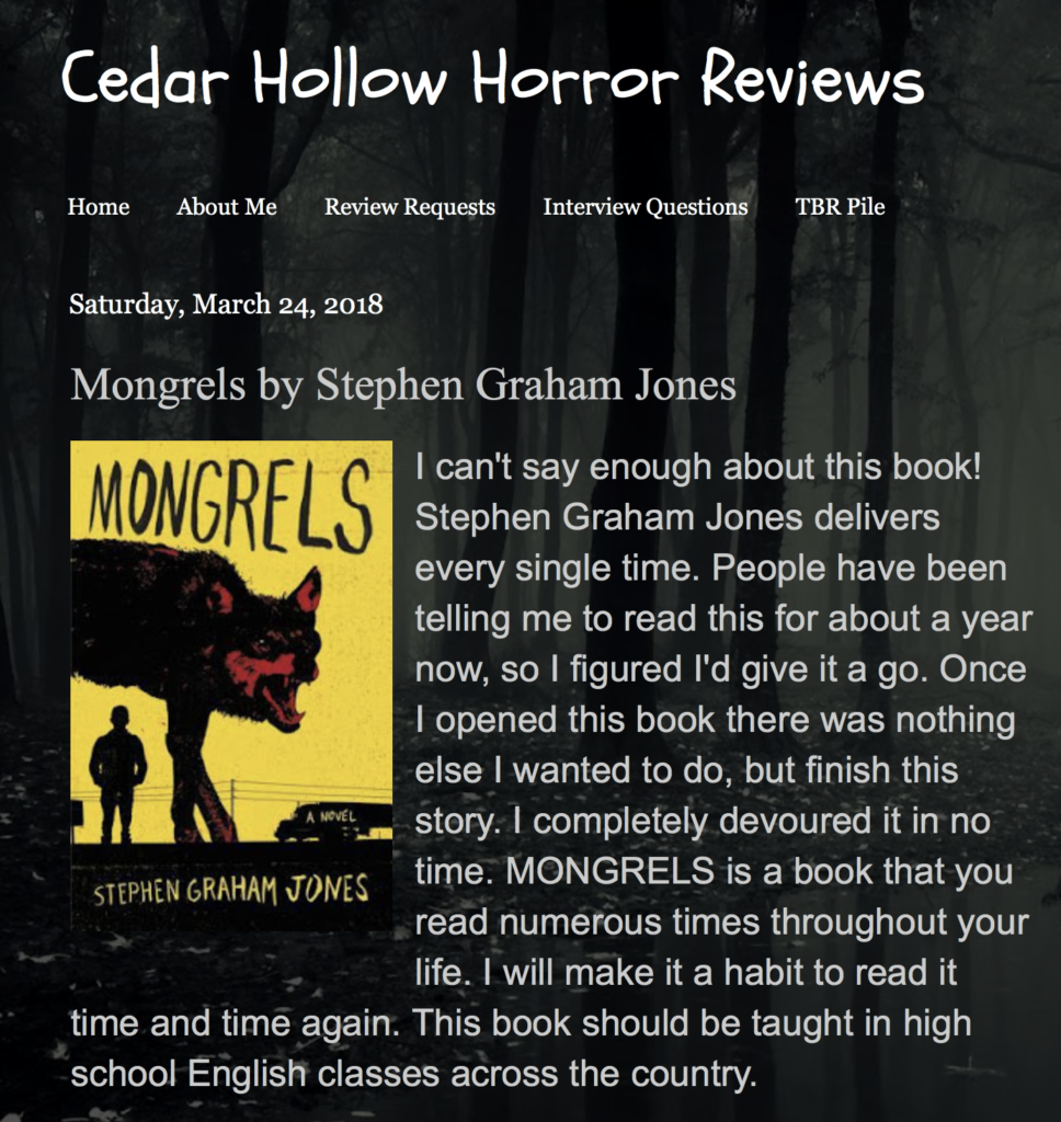 http://www.cedarhollowhorrorreviews.com/2018/03/mongrels-by-stephen-graham-jones_24.html