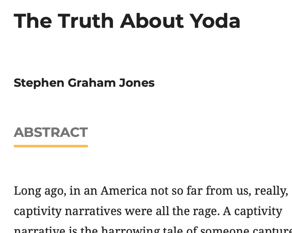 The Truth About Yoda December 23, 2019December 23, 2019 Reprint of a thing I did . . . in 2017, maybe? Very cool of the very cool Transmotion to run it: https://journals.kent.ac.uk/index.php/transmotion/article/view/873/1660