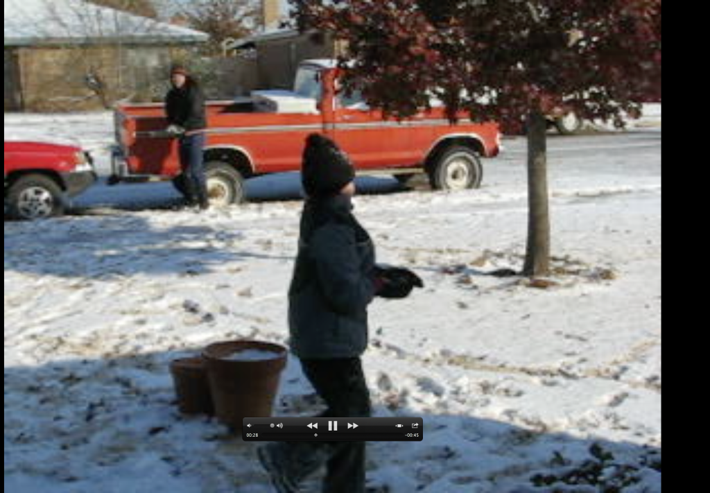 My kids still talk about this truck. It could do anything, and did. Chrome bumpers front and back, a diamondplate toolbox, and I always carried an extra solenoid, as this truck ate solenoids like no other truck I’ve ever known. But, man, was it pretty. Parking it all around Lubbock, I’d often come back to find notes on the dashboard and balanced on the steering wheel—people wanting to buy the truck, they’d break in just to prove they knew this year-model, then leave the note, with a phone number, and lock it back up. Used to have a jar I’d keep all the offers in, for a rainy day. I’d bought this Ford out of Arkansas, when I was living in Little Rock, and, on the move to Lubbock, dragging a horse-trailer, I’d come across a semi ran off the road, mired in the mud, a state trooper waving us all past. I offered to hook on, shift into four-low, and drag that big truck up. The trooper just looked at me with his humorless-eyes, told me he didn’t need my bumper laying on the road, fouling up traffic even more. And, yeah, dude was right. You’d have needed a tank and a stout chain to get that rig out of that ditch. My clearest, scariest memory with this truck is Boy Scout camping in Post, Texas with my son, when the skies just opened up, slammed a lake down on us a sheet at a time. I remember spinning my truck through all the slick up to our tent and just hauling the whole thing in—all the other dads were doing the same—then booking it home at two in the morning, sure the whole way that, in the storm and the blindness and the hustle, I’d ran over some other dad’s Boy Scout. It still keeps me up at night, that feeling, that almost-guilt, kind of like this life I’m living now, it’s just a shade away from the one the other me’s living, the one who did crunch over some kid in his sleeping bag. This isn’t a set-photo either, obviously; it’s a screen-cap from a random snowball-fight movie I found, from when we were living in Shallowater, Texas. I’ve got a set of photos of this truck SOMEwhere, though. When I sold it (via Thrifty Nickel) to move to Colorado, the kid who bought it off me was all of nineteen, said he needed a truck to get him from Lubbock to Dallas every other weekend. I explained to him that this was a 3/4 ton 4WD, that it had a big block 400, that—look at those tires, dude. This truck maybe gets eight miles per-gallon, going downhill. But the kid insisted. Like me, all it took with this truck was seeing it to fall in immediate and forever love with it. So I took his money. And then, when he couldn’t figure out how to start the truck, I walked back over, did it for him. I’ve never seen the truck since. I wish the kid well.