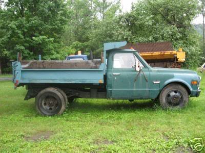This wasn’t my truck, it was the truck I drove a lot when I was working for my uncle. And, since you don’t take pics of work-trucks, especially with cameras you haven’t brought to work, those cameras also being cameras you don’t own, you’ll have to use your imagination some. But, trust me, halfway between these two trucks? There was a faded, not-at-all-tired, perfect little four-speed Chevy: