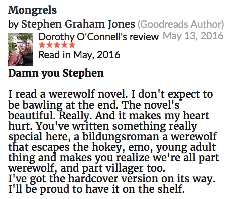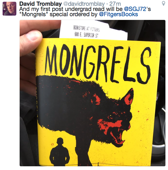 And, I assume that’s in B&W because a dog was taking the picture. Who says dogs and cats can’t be friends? Mongrels brings all kinds of species together. Very cool seeing it stripped from the dustjacket, too.