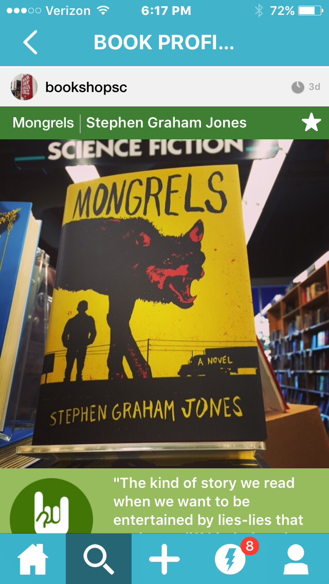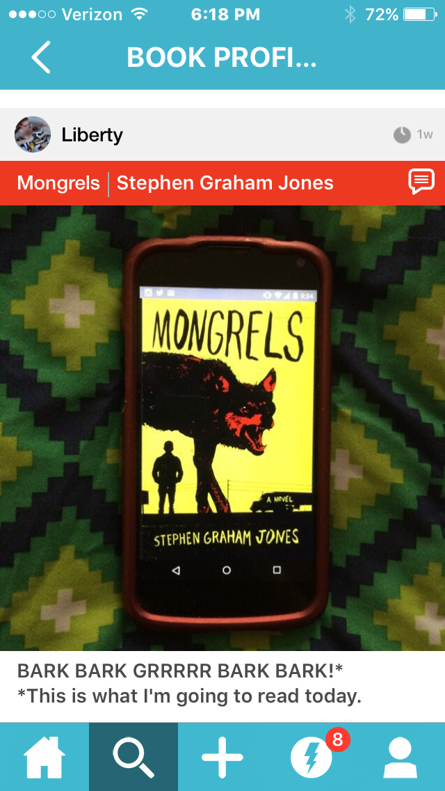 Those blue-framed ones are Litsy—kind of my preferred social media haunt, as it’s all about books, books, then a few more books. And, you can do cool stuff like this: