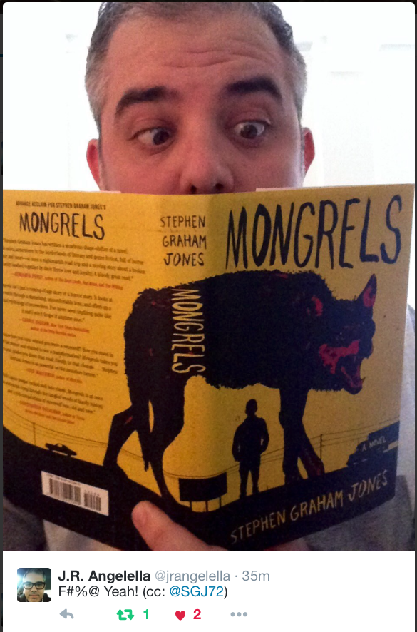 How it looks on a t-shirt (there were six or eight copies of Mongrels printed up way before the ARCs, and this is pretty much the covers they had):