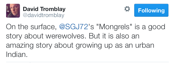Pretty slick company, yeah? Of those, I’ve only read the Joe Hill so far, and it was of course excellent, though I worry about it and Mongrels kind of touching there, as werewolves have a bad history with fire. Whole lot of them were burned at the stake back during the Inquisition. Kind of gets me suspecting that werewolves would not like Joe Hill’s fiery apocalypse. Unless he gifted them with a little immunity. But, also—or maybe I should say ‘then?’ Thing is, it’s a known fact that werewolves like their burgers rare: