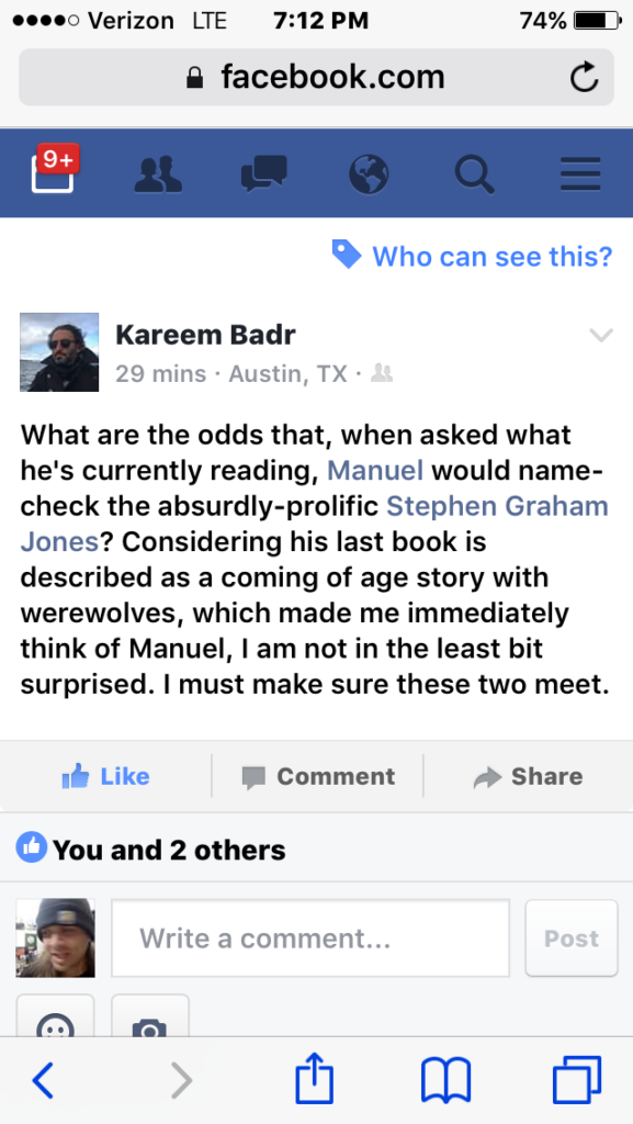 And, what could be cooler than to be in the feed/on the wall of another werewolf writer?