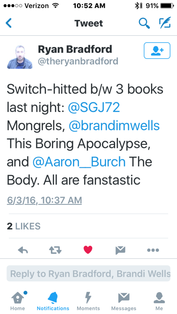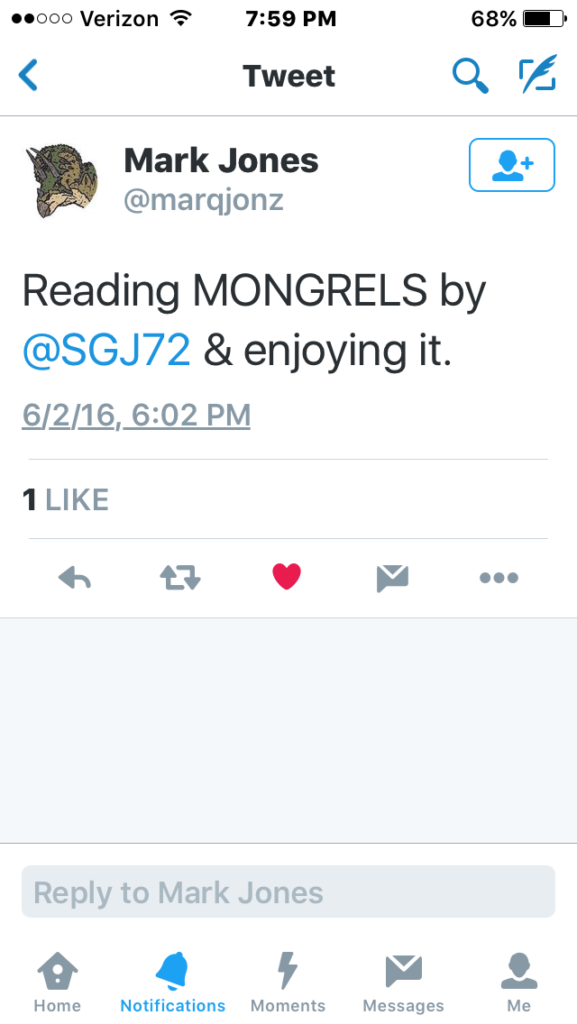 I know there’s not that many Joneses in the world, or on Twitter—what I’m saying is that me and Mark, here, we’re not related. So: completely unbiased opinion. Also? WERE he family, that in no way should mean that he would necessarily be kind to me or Mongrels . . .