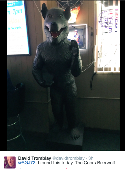 This. This this this. Those of y’all who have already burned through the hospital chapter of Mongrels, then you maybe thought I was making that up, about a certain statue on the porch of a certain liquor store. I kind of thought I was too. David Tromblay, though, he went out and found it: