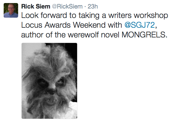 And, the Dark Horse bags for DCC, they were the same color as Mongrels. Meaning, sitting at a table, I kept seeing my book walking past: