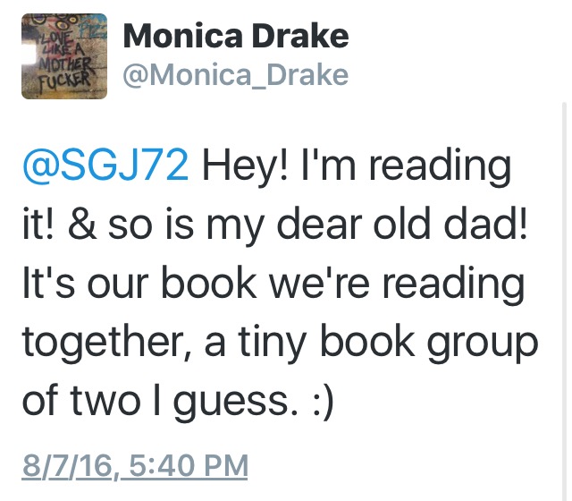 Another father-daughter read? So, so cool. And, Monica Drake: also so, so cool—very good writer, and, near as I know her, a pretty good human, too: