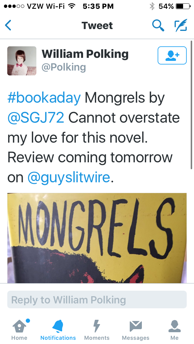 And let’s start this time with a couple snapshots in words of Mongrels: