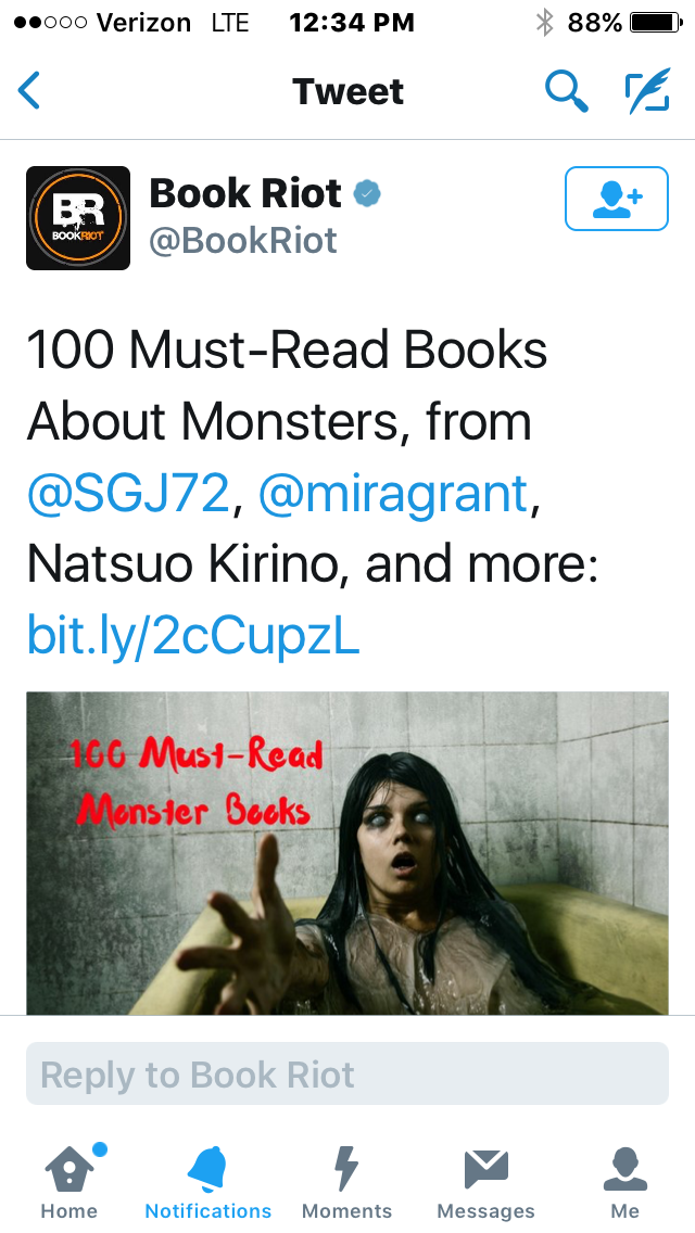 Such a cool list for the yellow book to have made. Also? There was actually a werewolf novel on here I HADN’T read (but now own—thank you, BookRiot).